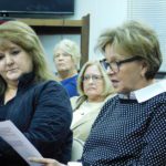 - Pattie Meyer, right, voiced concerns and questions about pollution from the possible ethane cracker plant and the oil and gas industry during a town hall meeting Monday night in Powhatan Point.