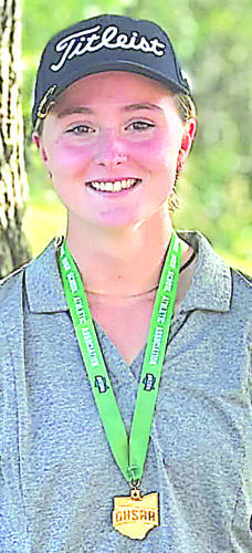 CAMBRIDGE — St. Clairsville senior Olivia Baker stood atop the field Wednesday in the Ohio Division II East District Girls Tournament at Cambridge Country Club, finishing in first place amidst 47 total competitors.