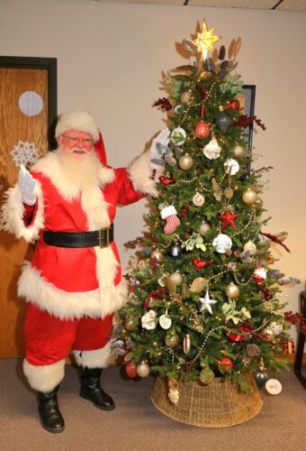 Santa Claus admires the Christmas tree at The Times Leader office as he prepares to make his rounds on Christmas Eve, bringing lots of joy to good girls and boys. Santa also helped the newspaper give toys away to area children who visited the office on Thursday. The toys ...