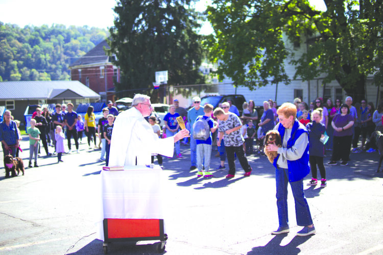 MARTINS FERRY — “Blessed are you, Lord our God, in all your creatures,” the Rev. John Mucha of St. Mary Catholic Church said before blessing several residents’ pets behind the church Friday after students attended Mass.
