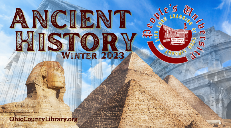 WHEELING — The new People’s University series being offered at the Ohio County Public Library in Wheeling on Thursdays beginning Jan. 5 will explore the ancient world, including Egypt, Greece, and Rome.