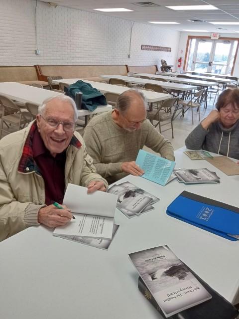 Photos Provided ABOVE: Frank Brock, left, and Duane Lucas, autograph copies of “Sub Chaser — The Smallest Warship of WWII.” The book, penned by Lucas, is based on Brock’s WWII naval career, recorded in a wartime logbook and stories.