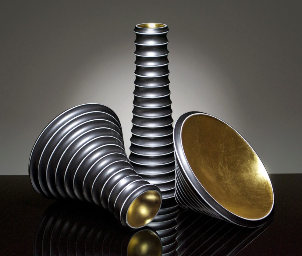 Although he has no formal ceramics training, his sophisticated surfaces establish him as an innovator in the eld. The technically challenging Fin series, for example, requires Teilhet to develop alternative ways of working with porcelain.
