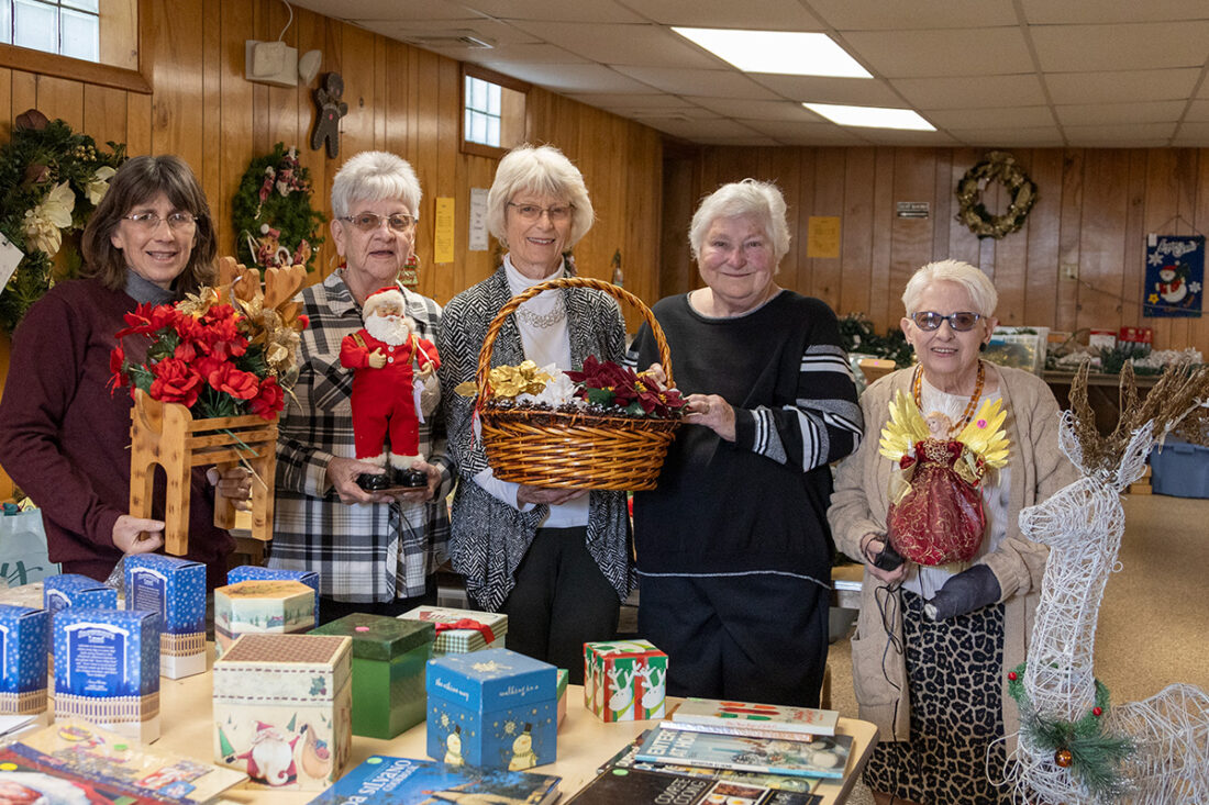 Maryland Thibault, from left, Karen Jockims, Donna Ball, Pauline Wells and Diane Vargo display some of the items available at the Harrison County Catholic Women’s Club’s used Christmas ornament sale. Many new items have been put out for the final week of the sale, which wraps up from 9 a.m. to 6 p.m. Friday, Nov. 10, and from 9 a.m. to 1 p.m. Saturday, Nov. 11, at Sacred Heart Church Hall in Hopedale. Call 740-937-2062 or 740-937-2941 for more information.