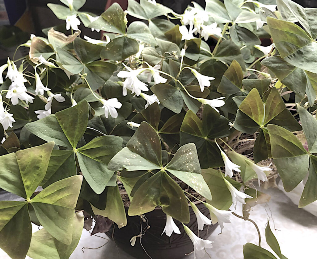 Your shamrock will reward you with lovely five-petaled, white, trumpet-shaped flowers in spring.
