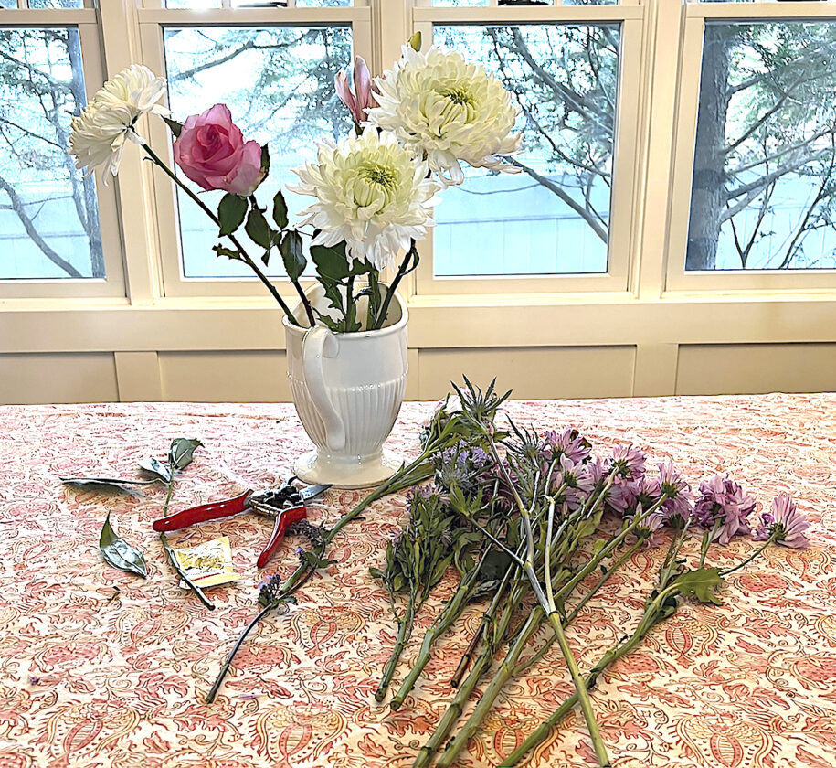 You can also “shop” for filler flowers in your garden. Look for plants whose stems hold clusters of small flowers, such as astilbe, catmint, chamomile, dianthus, dill, goldenrod, heather, lady’s mantle, lavender, lily of the valley, Queen Anne’s lace, sea holly, snapdragon, sweet pea, yarrow and verbena.