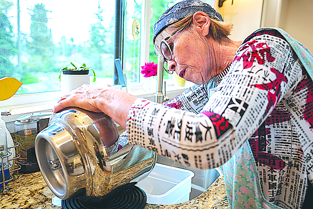Cheryl Ewaldsen bakes bread for Community Loaves at her home in Edmonds, Wash., Saturday, Sept. 6, 2025. (AP Photo/Annika Hammerschlag)