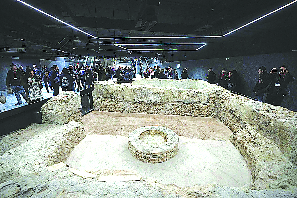 Commuters and tourists entering the station beside the iconic amphitheater can view displays of ceramic vases and plates, stone wells and suspended buckets, as well as the ruins of a cold plunge pool and thermal bath from a first-century dwelling. Screens show the excavation process — serving both to delight archaeology enthusiasts, and justify why it has taken so long to open the station.