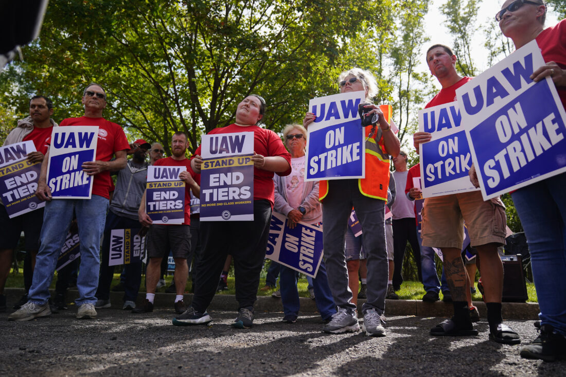 Turner said after working there 10 years, he makes $31 an hour. On the same picket line, Shelton Matthews, who started at GM three years ago, makes $20 an hour because the company’s tiered wage structure mean lower pay for new workers.