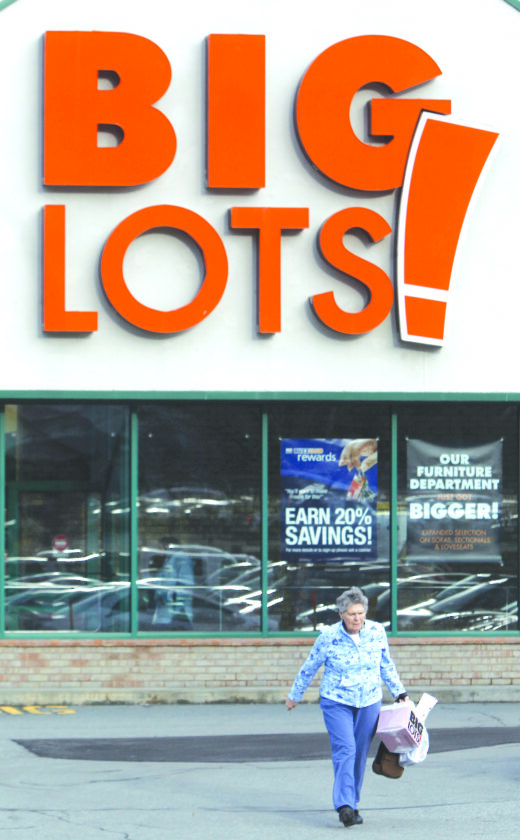 FILE - A shopper leaves the Big Lots store on Dec. 4, 2012 in Berlin, Vt. (AP Photo/Toby Talbot, file)