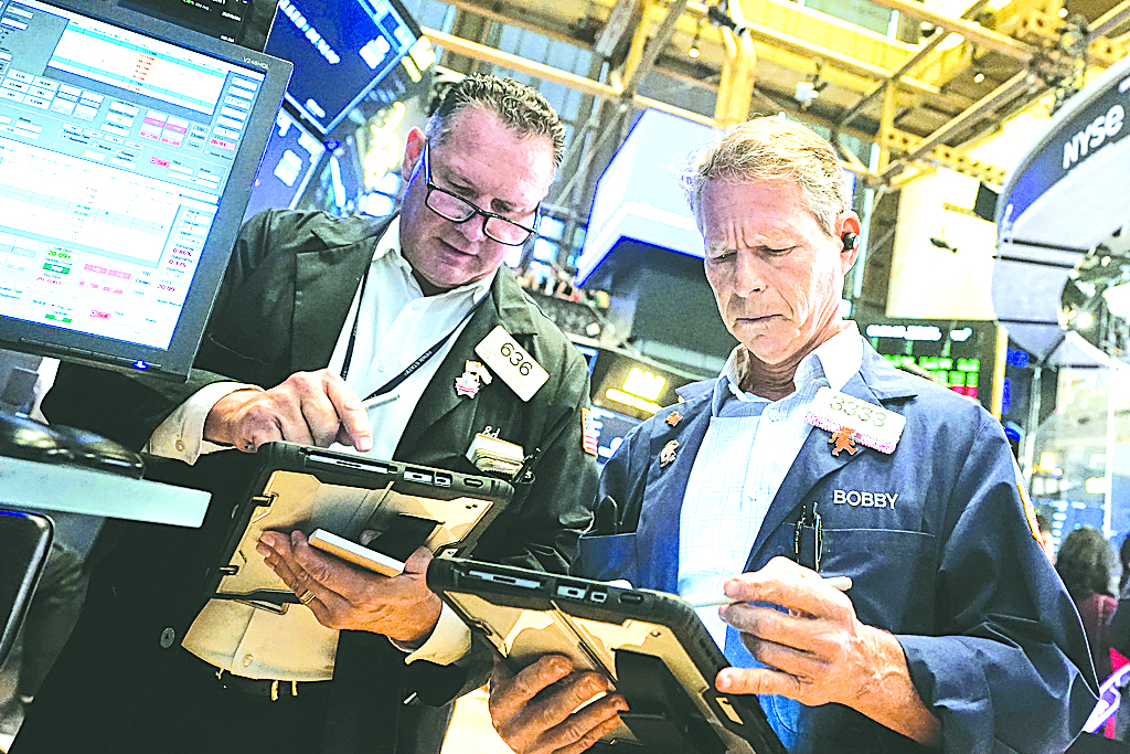 Traders Edward Curran, left, and Robert Charmak work on the floor of the New York Stock Exchange, Wednesday, Sept. 17, 2025. (AP Photo/Richard Drew)