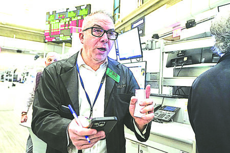 Options trader Joseph D'Arrigo works on the floor of the New York Stock Exchange, Tuesday, Dec. 2, 2025. (AP Photo/Richard Drew)