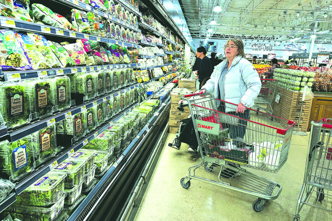 Shoppers shop at a grocery store in Schaumburg, Ill., Monday, Feb. 9, 2026. (AP Photo/Nam Y. Huh)