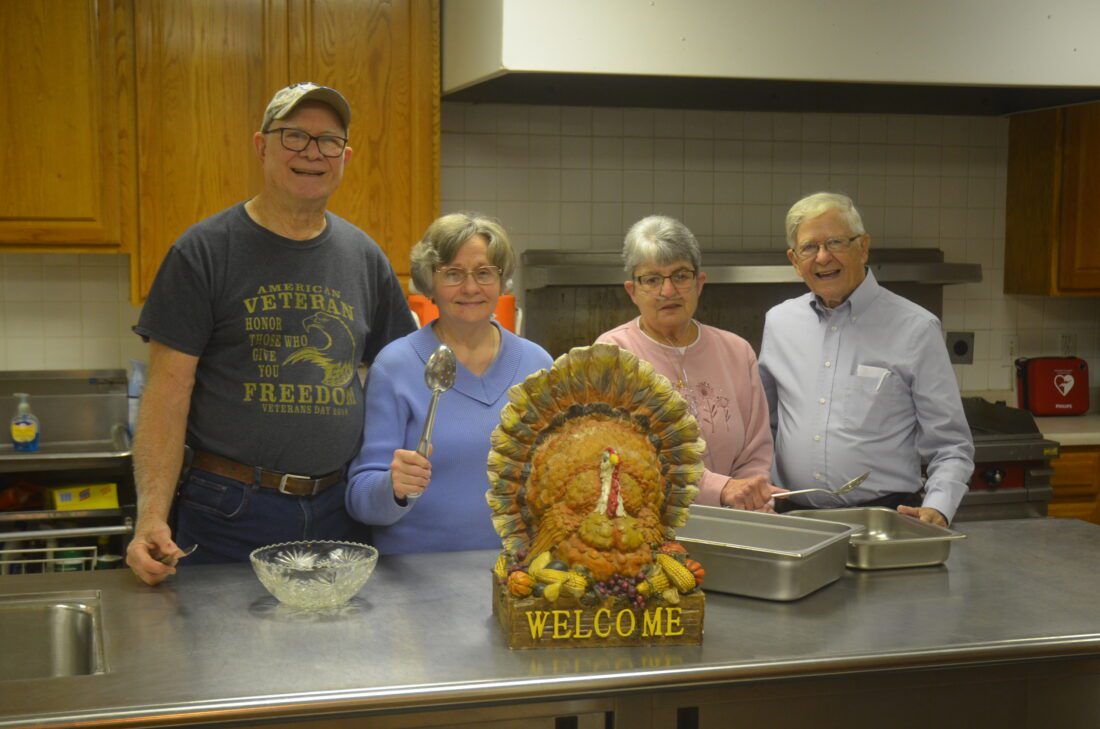 ST. ANTHONY Parish will hold its annual turkey dinner from 11 a.m. until 3 p.m. Sunday at the church on Main Street in Bridgeport. The menu consists of turkey, mashed potatoes, gravy, green beans, dressing, cranberry sauce, cole slaw, dessert and a drink. Making plans, from left, are Jake Molter, Sherry Molter, Barbara Aubrey and Dick Riley.