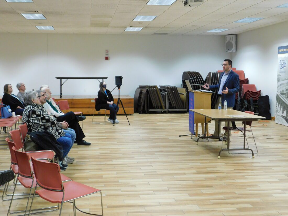 Archivist and author Jon-Erik Gilot speaks during the Great Stone Viaduct Historical Education Society’s Winter Lecture series last week at the Bellaire Public Library. His subject was John Brown’s raid on Harper’s Ferry, Virginia, prior to the Civil War. More presentations are scheduled at 6 p.m. Wednesdays, March 15 and 22 at the library.