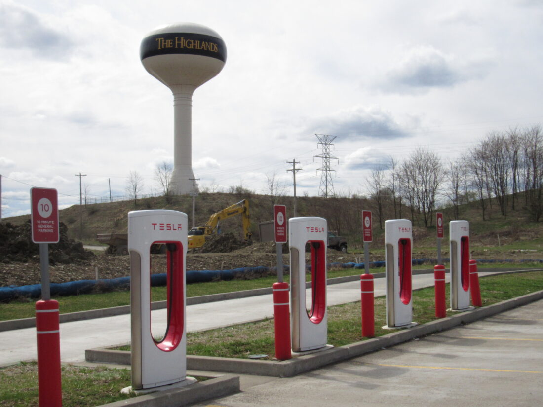 File Photo by Shelley Hanson Electric vehicle charging stations are shown behind the Sheetz gas station at The Highlands. The American Lung Association’s State of the Air report says the Wheeling Metro Area’s air quality regarding ozone is a “B.”