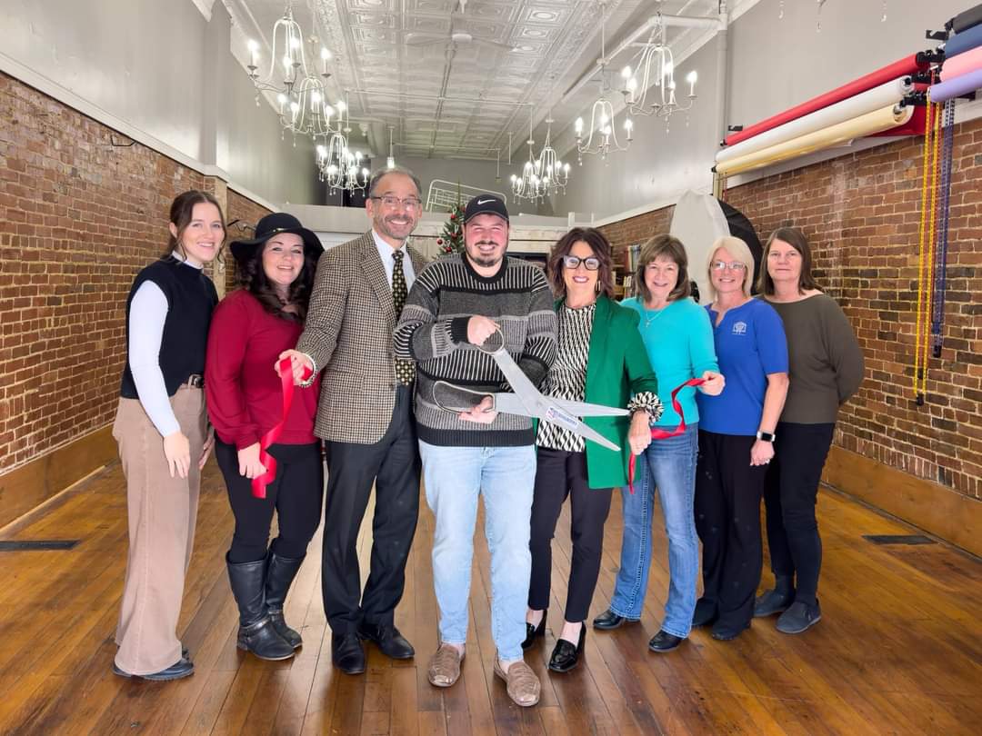 Barnesville Area Chamber of Commerce members help Harley Steed cut the ribbon to officially open his new photography studio on Thursday at 125 E. Main Street in Barnesville. Pictured from left are Delilah Hudson, Meghan Leek, chamber President John Rataiczak, owner Harley Steed, chamber Director Jill Hissom, board member Brenda Brown, Jane Lucas and Patty Riemenschneider. Harley Steed Photography will have its grand opening at 5:30 p.m. Saturday. For more information about the business, visit the Harley Steed Photography Facebook page or call 304-281-8276.