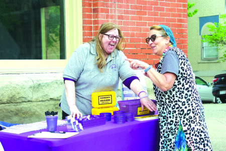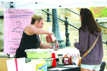 Fur Pets Sake owner Angela Hatfield, from left, Fur Pets Sake volunteer Rosie Pfalzgraf and St. Clairsville resident Cassie Majzun celebrate Cinco De Mayo at St. Clairsville Main Street Small Business Association’s third annual Cinco De Mayo block party.