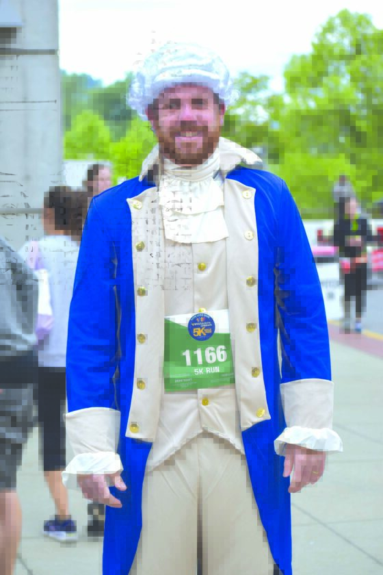 Photo by Eric Ayres Shadyside’s Nathan Butts came clad as President George Washington — commander of the Continental Army — to run the Ogden Wellness Weekend 5K Run as punishment for losing his annual fantasy football pool.