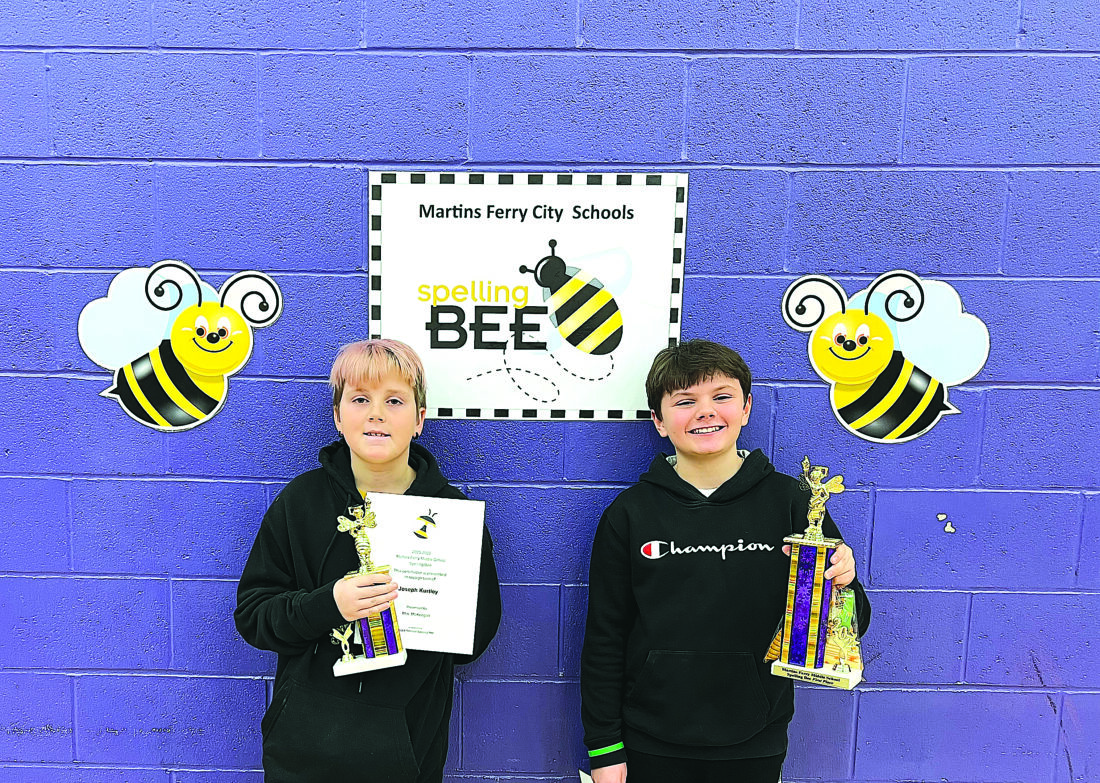 Pictured left to right are Martins Ferry Middle School spelling bee winners Joseph Kurtley, who came in second place and Declan Gwennap, who finished first. Both advance to the 2025-26 Belmont County Spelling Bee, scheduled for 7 p.m. Feb. 12 at the ECO Center on the campus of Ohio University Eastern, St. Clairsville. The county bee is sponsored by The Times Leader, Belmont Savings Bank, Wilson Furniture, Wilson Funeral Homes, LED Transportations, Uniglobe Ohio Valley Travel, East Central Ohio Educational Service Center and the Martins Ferry Elks.
