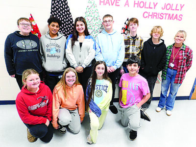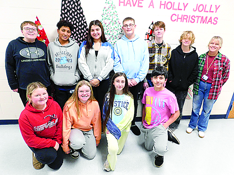 Photo provided Bridgeport Middle School’s seventh and eighth grade members of the Sources of Strength pictures in front from left, Nova, Ariel, Esmee and Zander. Standing from left are Johnathan, Braylon, Sophia, Kason, Olicer, Courtney and Prevention Specialist Holly Garvin.