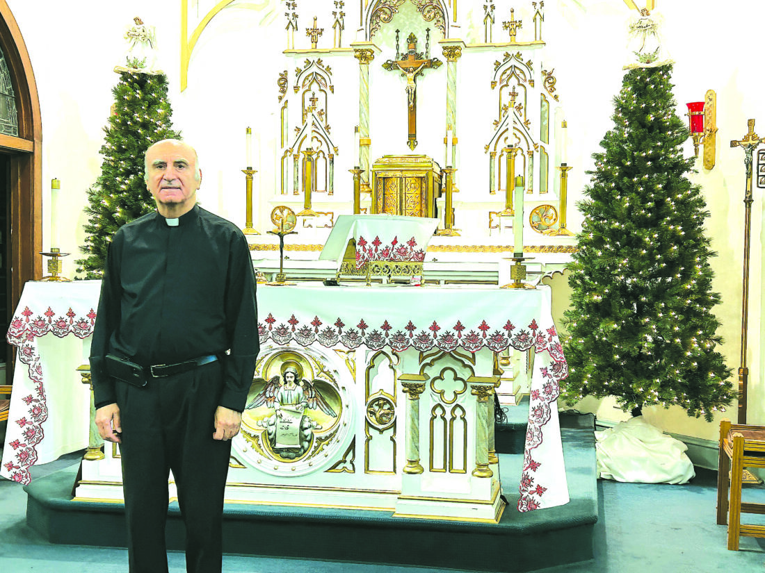 Photo by Joselyn King Monsignor Bakhos Chidiak of Our Lady of Lebanon Church in Wheeling shows the church’s holiday decorations.