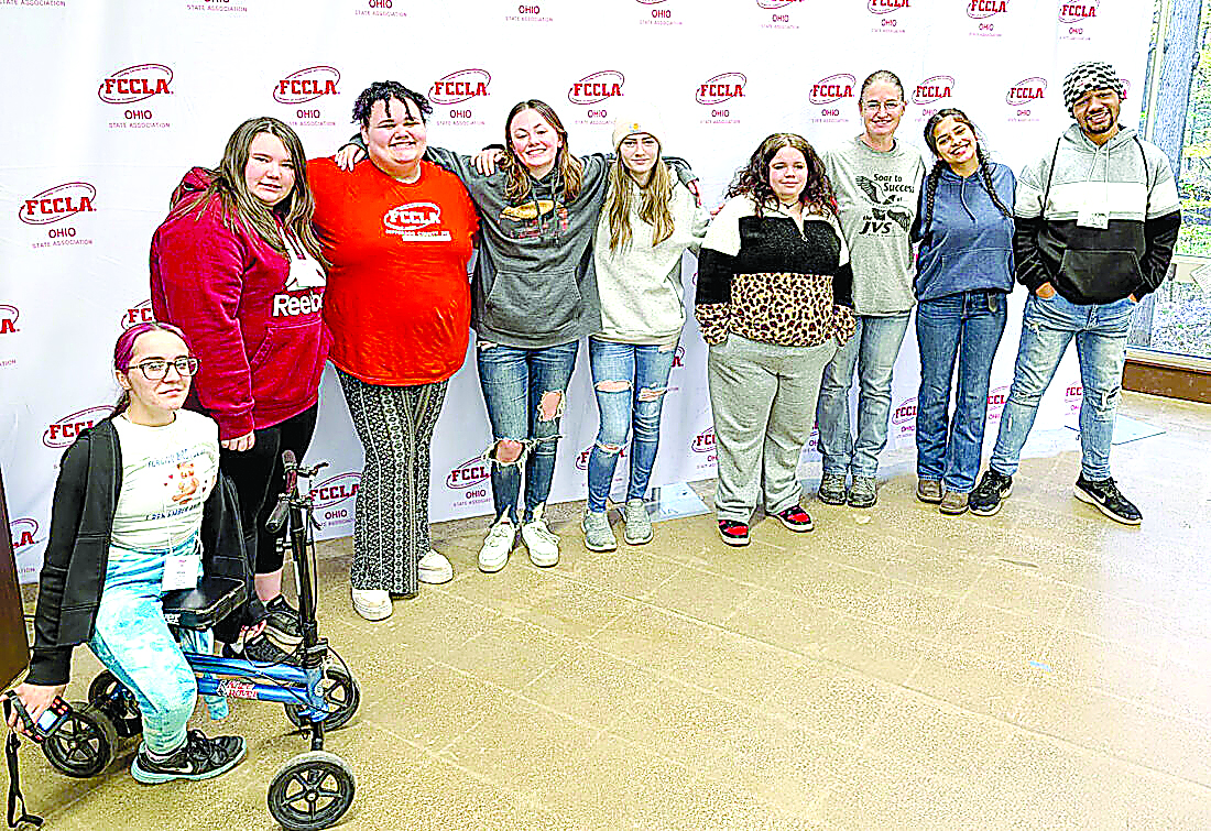 Photo Provided Eight students in Jefferson County Joint Vocational School’s early childhood education program attended the annual Ohio Family, Career and Community Leaders of America Fall Leadership training in Perrysville. Those attending were, from left, Alyssa Bonecutter, Ava Carey, Madison West, Bella Price, Hayden Shurak-Wood, Dianna Bonecutter, ECE instructor Amy Rusnak, Lyla Navarro and Donta’ Jones.