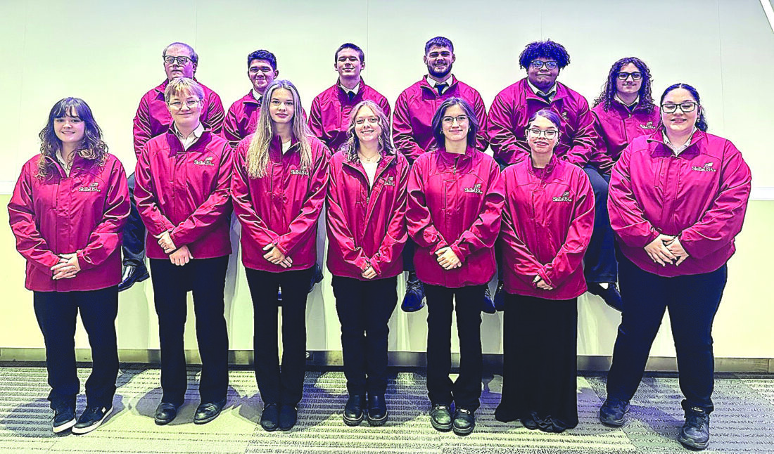 Thirteen students from the Jefferson County Joint Vocational School attended the SkillsUSA Fall Leadership Conference in Columbus on Nov. 20-21, where pupils Chloee McCartney and Trenton Hess were elected regional officers for the southeastern district of Ohio. Their positions will be determined during an upcoming conference in Deer Creek. Meanwhile, Tucker Winski, Kenny Bloom, Katie Rivers, and Gianna Roderique served as voting delegates and helped promote the candidates during the conference. The remaining students attended a variety of sessions which included topics on Leadership 101, listening and communication skills, social media, and project management. Pictured are, front from left, Delaney O’Brien, Gianna Roderique, Bri Hudson, Brookelina Grigsby, Katie Rivers, Jade Avinger, and Chloee McCartney. Back: Kenny Bloom, Tucker Winski, Trenton Hess, Luke McMillion, Semaj White, and Gavin Fernandez.