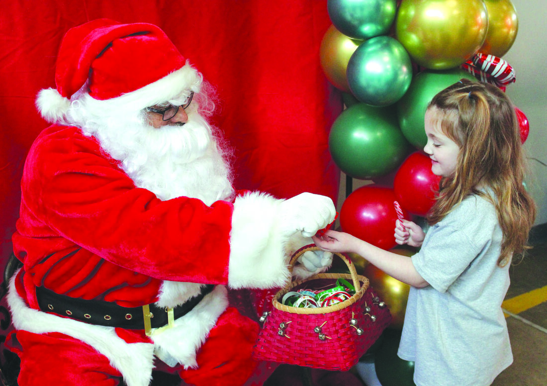 Photo Provided Santa Claus gives 6-year-old Rilynn Yeager of Toronto some goodies after hearing her Christmas wishes. Santa came to town to the delight of children and adults alike at a sensory-friendly holiday event at Jeffco Center in Steubenville on Dec. 14.