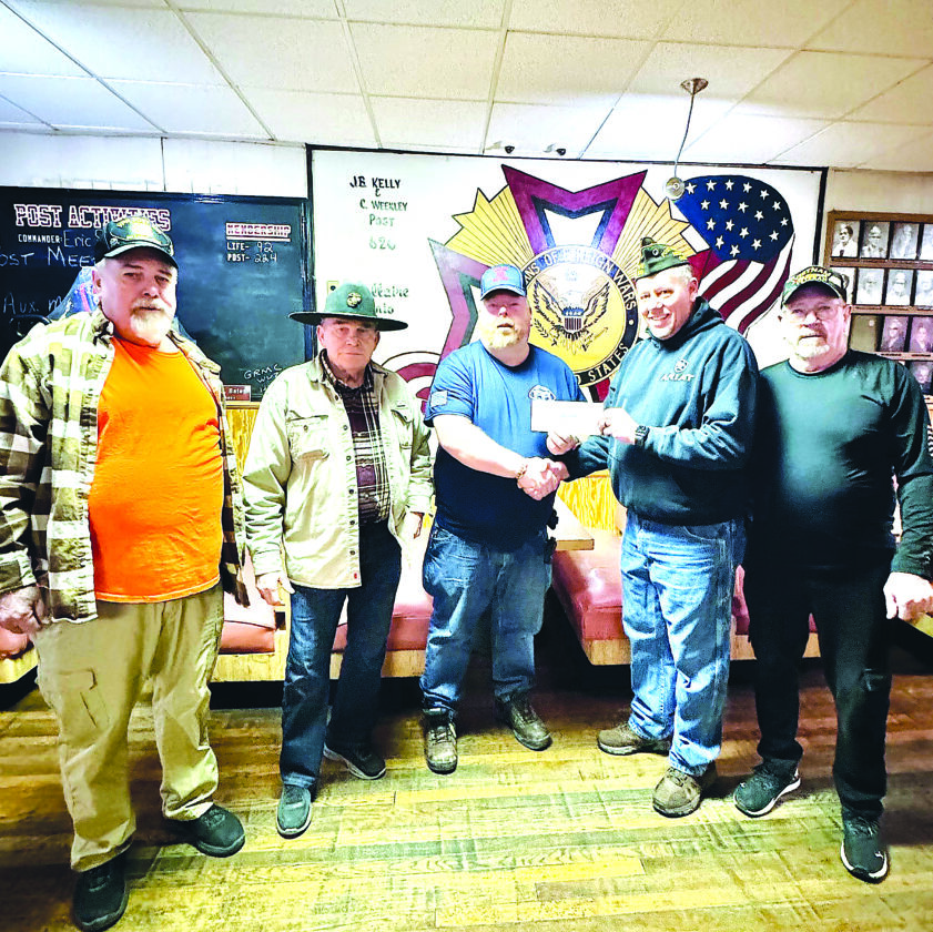 Bellaire Veterans of Foreign Wars, Post 626 of Bellaire donated $1,000 to the Bellaire Volunteer Fire Department. Pictured are, from left, Junior Vice Commander Gerald Bruce; Adjutant Robert Blount; Fire Department representative Al Rogers; VFW Commander Eric Slater; and Senior Vice Commander Joe LaPorte.