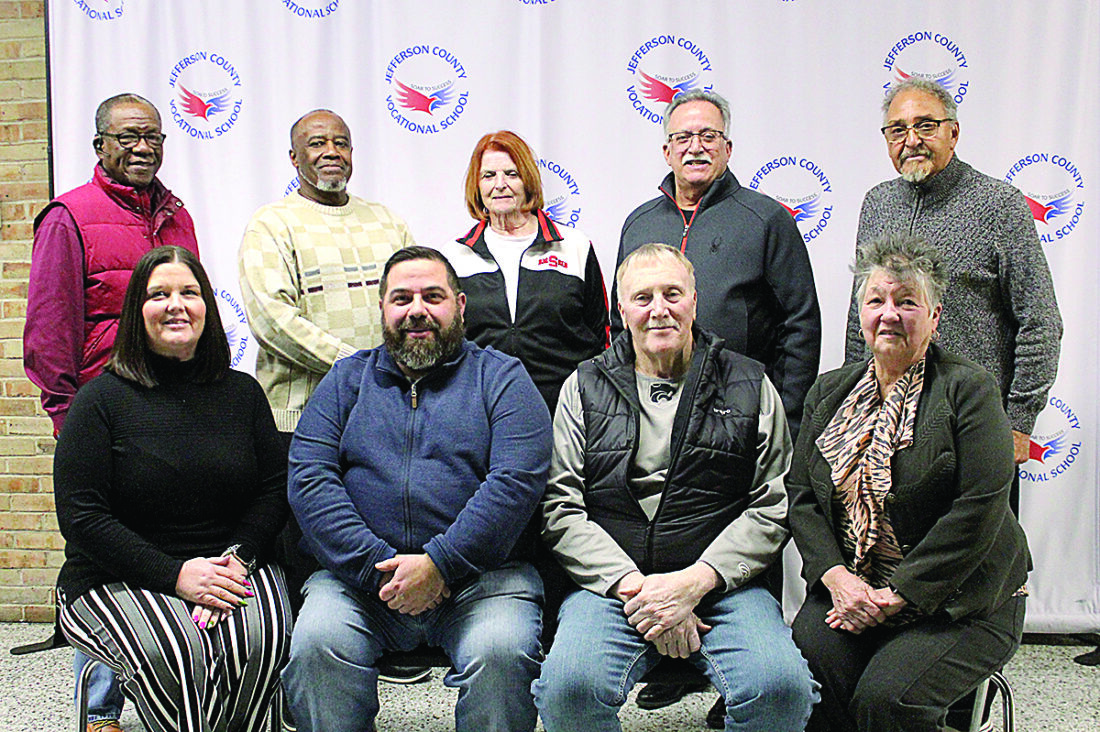 Photo Provided The Jefferson County Joint Vocational School Board of Education restarted for the new year and returned Steve Bezak III and Ron Smyth as board president and vice president respectively, during the meeting on January 20. Pictured are, front left, Julie Ault, board president Steve Bezak III, board vice president Ron Smyth and Tony Jean Dondzila. Back: Lee Gillison, Barry Gullen, Ruth Ann Bruzzese, Stephen Cowser and William Hendricks.