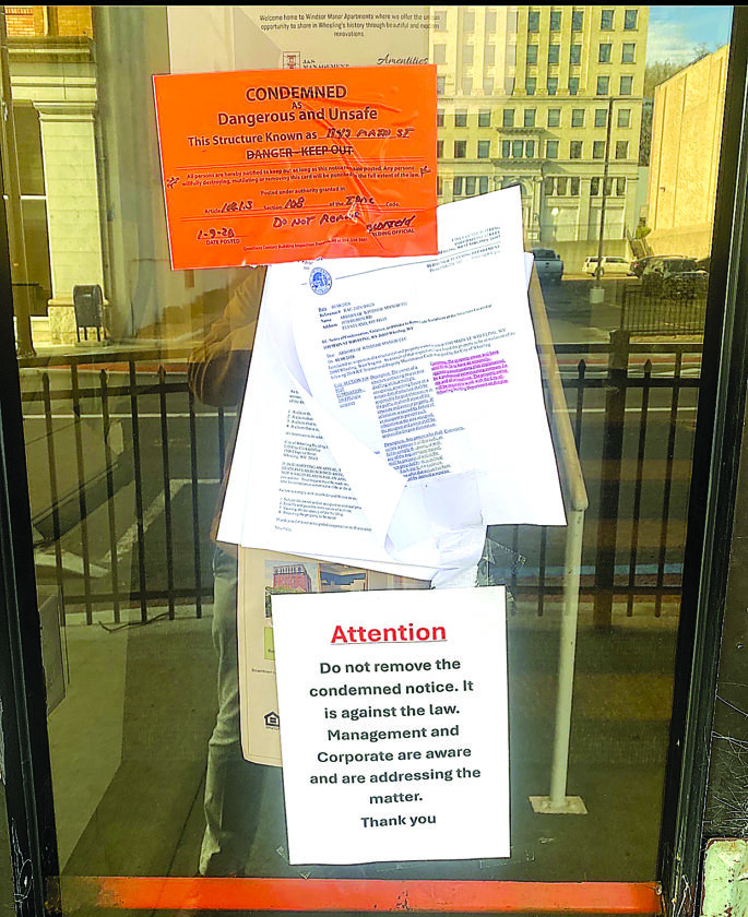 WHEELING — An apparent roach infestation led to a letter of condemnation appearing on the front door of Windsor Manor Apartments on Friday. The building’s tenants aren’t being forced from their homes, but the building’s owner has work to do to get back into compliance — and a month to do it.