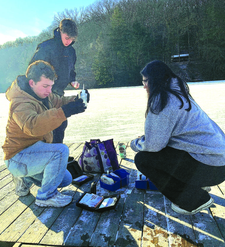 Steubenville High School science students will utilize a $3,400 Environmental Research Grant from the Foundation for Appalachian Ohio to determine whether microplastics are found in fish residing Jefferson County’s waterways to the Ohio River. The grant will acquire equipment for the study, which is set for January. Pictured are, from left, students Holden Mason, Gabe Martin and Kylee Moffat.