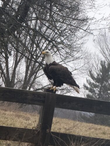 A birdwatcher from Colerain, Tammy Holmes, snapped this amazing photo of a Bald Eagle on Barton Road. It was perched on the fence right outside the old WTRF news station Thursday evening around 6 p.m. (Photo provided)