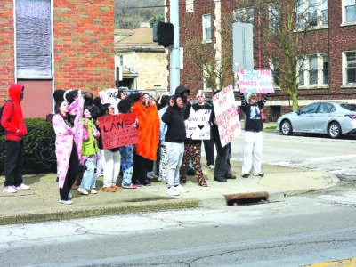 About 15 students left Steubenville High School on Thursday morning to hold a protest across the street against the departure of Scott Lane, a history teacher said to have voiced criticism of President Trump during a classroom session. (Photo by Warren Scott)