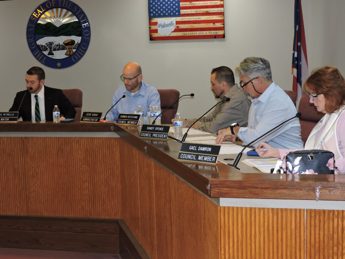 Photo by Warren Scott At Wednesday’s Village Council meeting, Wintersville Mayor Mike Petrella announced public comment will be accepted on the proposed creation of a Designated Outdoor Refreshment Area, where patrons of local businesses could carry an open container of alcohol, in a specific cup, outside.