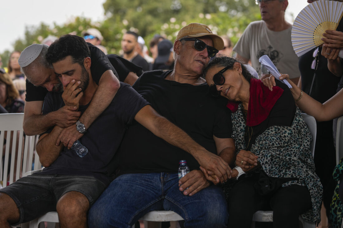 Mourners attend the funeral of May Naim, 24, during her funeral in Gan Haim, central Israel, Wednesday, Oct. 11, 2023. Naim and at least 260 more Israelis were killed by Hamas militants on Saturday at a rave near Kibbutz Re'im, close to the Gaza Strip's separation fence with Israel as the militant Hamas rulers of the territory carried out an unprecedented, multi-front attack that killed over 1,000 Israelis. (AP Photo/Francisco Seco)