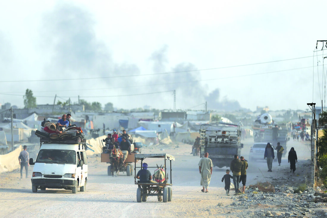 Palestinians fleeing from the southern Gaza city of Rafah during an Israeli ground and air offensive in the city on Tuesday, May 28, 2024. (AP Photo/Jehad Alshrafi)