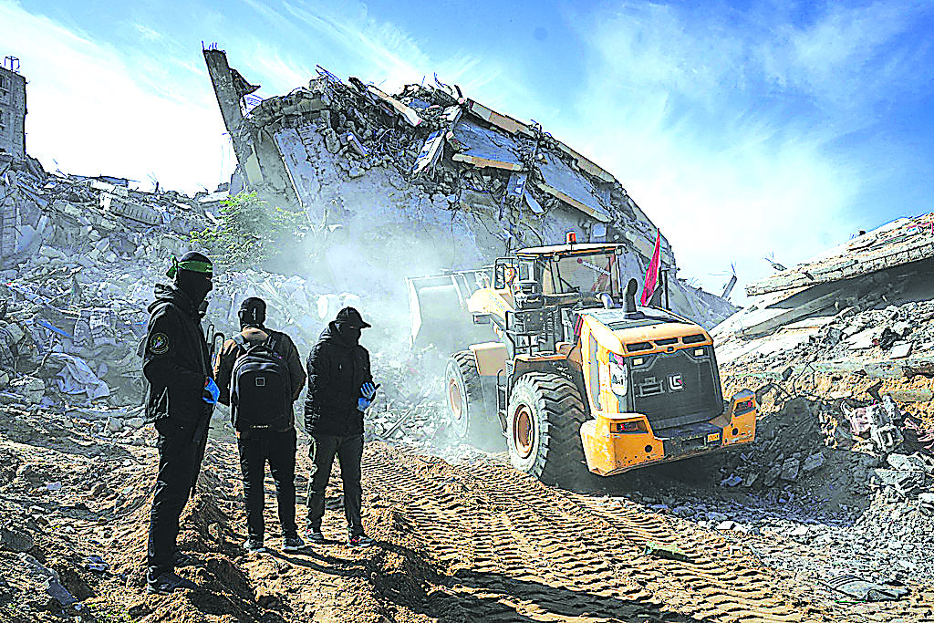 Islamic Jihad and Hamas militants search for the remains of deceased hostages in Beit Lahiya, northern Gaza Strip Wednesday, Dec. 3, 2025. (AP Photo/Jehad Alshrafi)