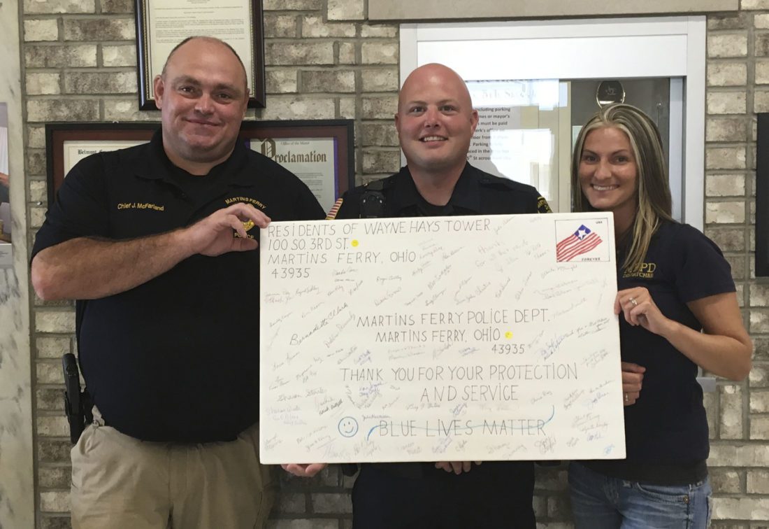 MARTINS FERRY — Residents of the Wayne L. Hayes Apartments created a big “thank you” postcard for members of the Martins Ferry Police Department.