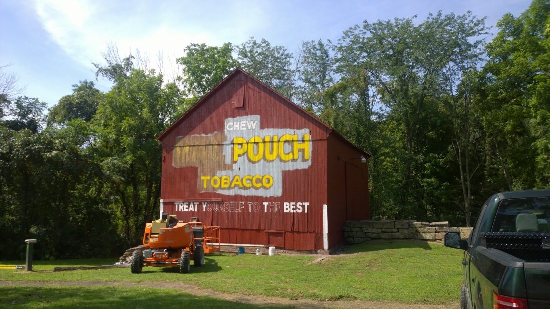 On Friday, members of the Mail Pouch Barnstormers began arriving in the region for their 15th annual gathering and to work on a special project. They spent the weekend collaborating with the staff at Barkcamp State Park to restore the last Mail Pouch sign ever painted by the late Harley Warrick.