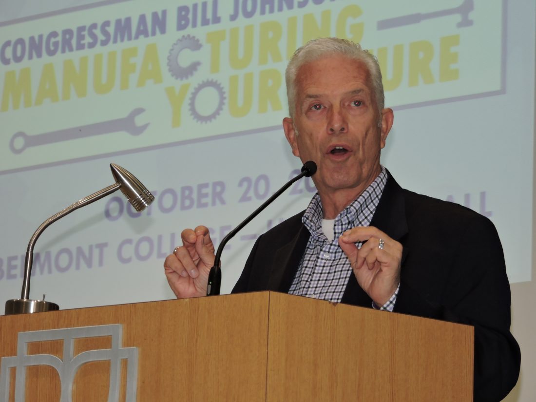 Photo by Casey Junkins U.S. Rep. Bill Johnson, R-Ohio, speaks to about 400 local high school students regarding potential careers in manufacturing during a Thursday forum at Belmont College.