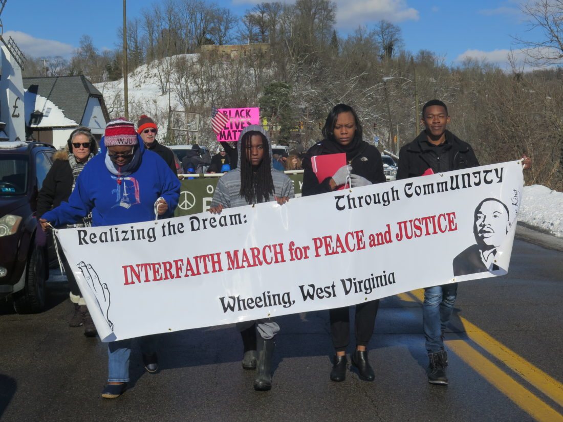 The commemoration began with the Interfaith March For Peace And Justice down Wheeling Hill celebrating King’s legacy. Prior to the start of the march, Ron Scott of the Wheeling YWCA reads aloud passages from Martin Luther King Jr.’s “Letters From A Birmingham Jail.”