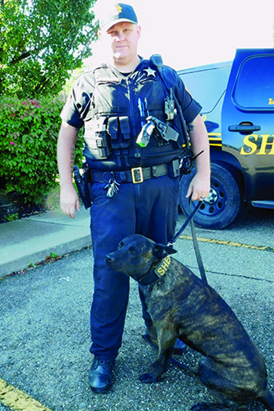 T-L Photo/ROBERT A. DEFRANK K-9 Officer Tuco and his partner and handler, Deputy Chad Kulpa of the Belmont County Sheriff’s Department, are asking the public to go online and vote. Tuco is a finalist to win a new K-9 police SUV.