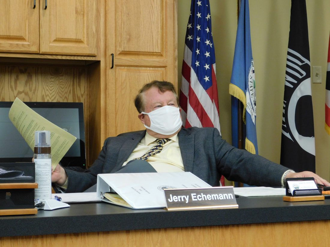 Belmont County Commissioner Jerry Echemann and others accept bids for water system upgrades. A decision may be announced this week.