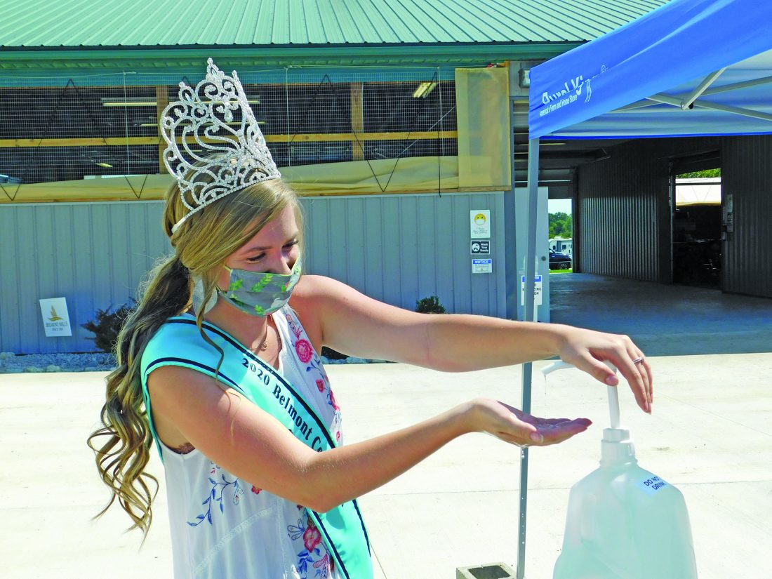 T-L File Photos Belmont County Junior Fair Queen Megan Garrison of Belmont did her best to prevent the spread of COVID-19 precautions during a reduced Belmont County Junior Fair in September. Many events and festivals were halted last summer due to the coronavirus.