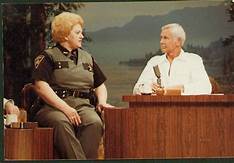 Photo Provided Former Belmont County sheriff Kathy Crumbley chats with Johnny Carson during an appearance on his show. Crumbley was a popular TV guest during her term from 1976-81.