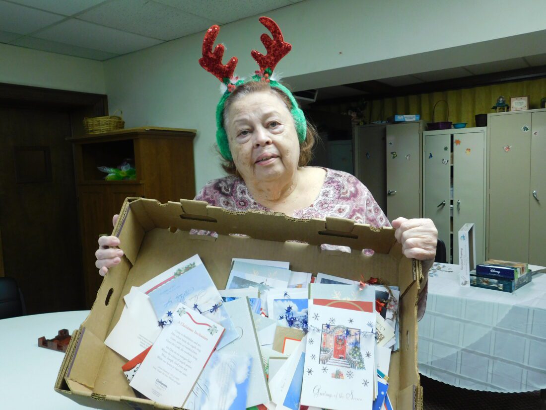 “I get cards from people who donate them and give them to us, and I have everybody here sign them,” Pangle said. “All these are going to go to Maryland, and then they’re going to get mailed out to hospitals, to veterans for the holidays. … I would like to get more senior centers involved in it and more people. I want people to realize we have them here and they can get them. … Next year I would like to see a lot of the organizations and stuff make contact with us, and I will be glad to give them cards that we need back by Thanksgiving.”