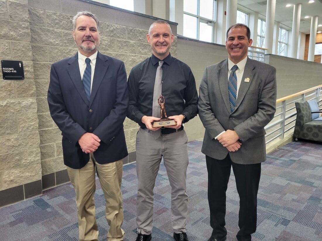 Chris Hannahs of Barnesville, an intervention specialist with the Belmont County Alternative Program partnered with the East Central Ohio Educational Service Center, was recognized last Wednesday by the Coalition of Rural and Appalachian Schools as an “Outstanding Middle School Teacher” during its meeting and awards ceremony in Zanesville.
