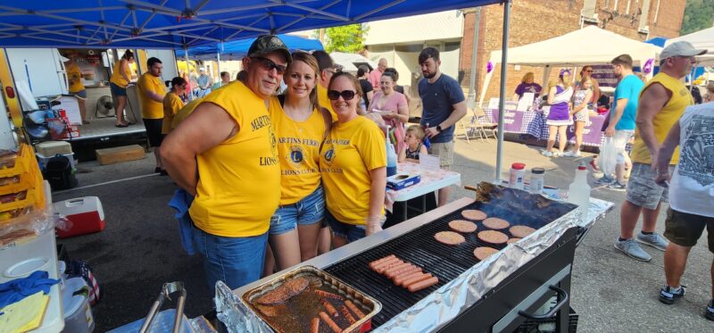 Martins Ferry Lions Club members, from left, Michael Deleonardis, Shaye Deleonardis and Leygh-Ann Anderson grill burgers and hot dogs during the event. The festival, an old Purple City tradition that had been discontinued, was revived by Project Forward, a business district revitalization organization that formed in the wake of a 2016 fire that destroyed several businesses.